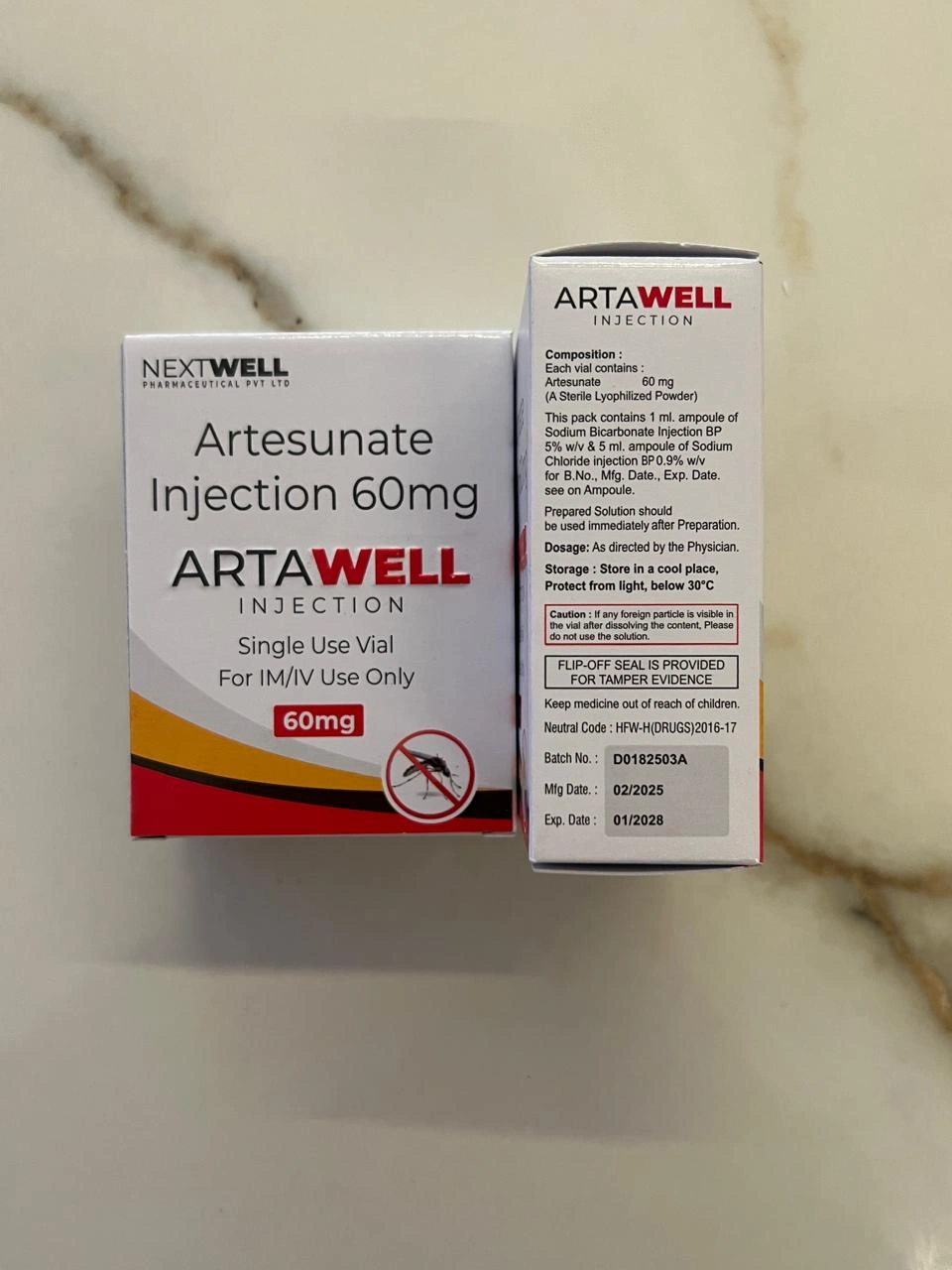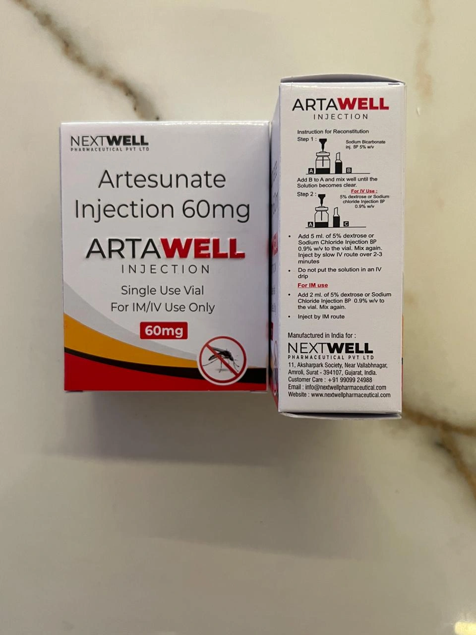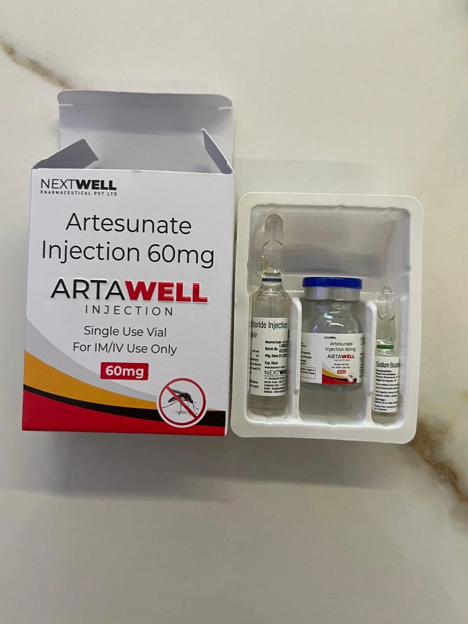 Artawell-60 Injection contains Artesunate 60mg, a fast-acting antimalarial medication used in the treatment of malaria. It is administered by intramuscular (IM) or intravenous (IV) injection under the supervision of a healthcare professional. This medicine is especially useful in cases where oral administration is not possible.