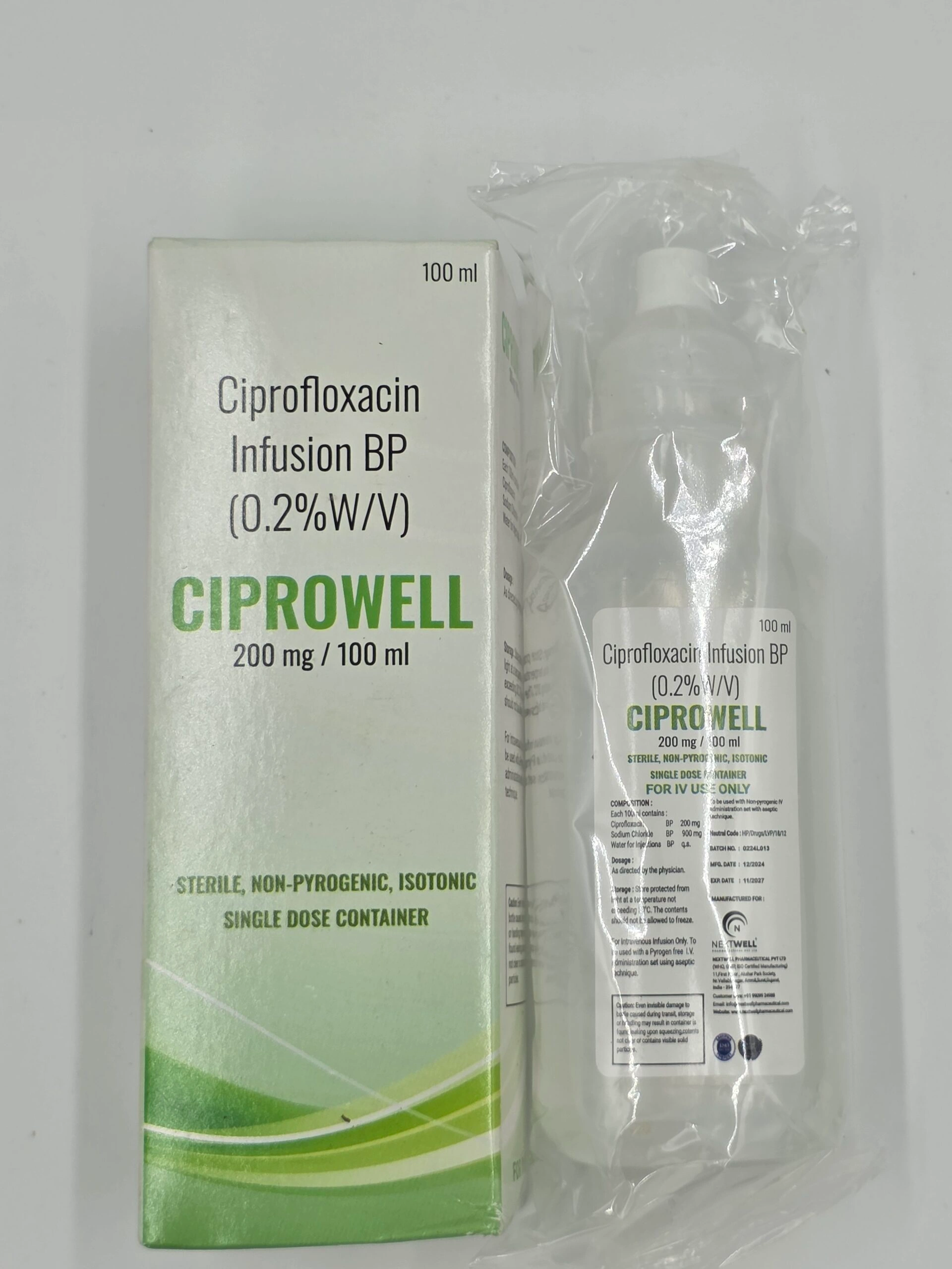 Ciprowell Infusion contains Ciprofloxacin 200mg/100ml, a broad-spectrum antibiotic used in the treatment of various bacterial infections. It is administered by intravenous (IV) infusion under the supervision of a healthcare professional. This formulation is particularly useful in cases where oral administration is not feasible.