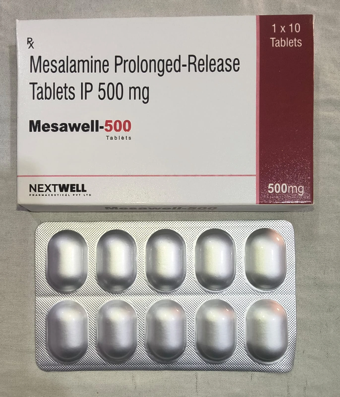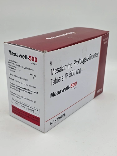 Mesawell-500 Tablets contain Mesalamine Prolonged-Release 500mg and are used for the treatment and maintenance of ulcerative colitis and Crohn’s disease. This oral prolonged-release tablet reduces inflammation in the intestinal lining, helping relieve abdominal pain, diarrhea, rectal bleeding, and bowel discomfort. Common side effects may include nausea, mild abdominal pain, headache, or diarrhea. Rarely, kidney or liver issues may occur, so regular medical monitoring is recommended.