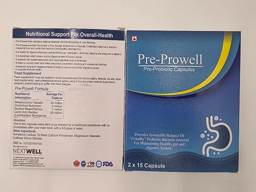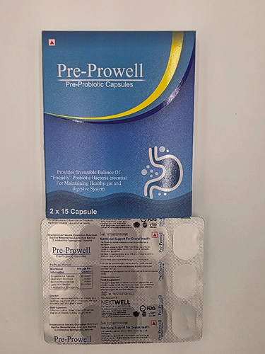 Pre-Prowell Capsules contain a powerful blend of prebiotics and probiotics formulated to restore healthy gut flora, improve digestion, and strengthen immunity. This advanced gut health supplement helps in managing antibiotic-associated diarrhea, bloating, indigestion, and Irritable Bowel Syndrome (IBS). It is designed for daily digestive care and long-term wellness.