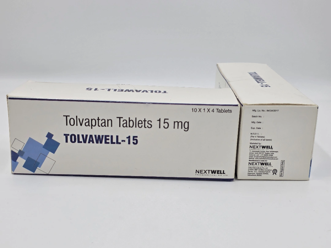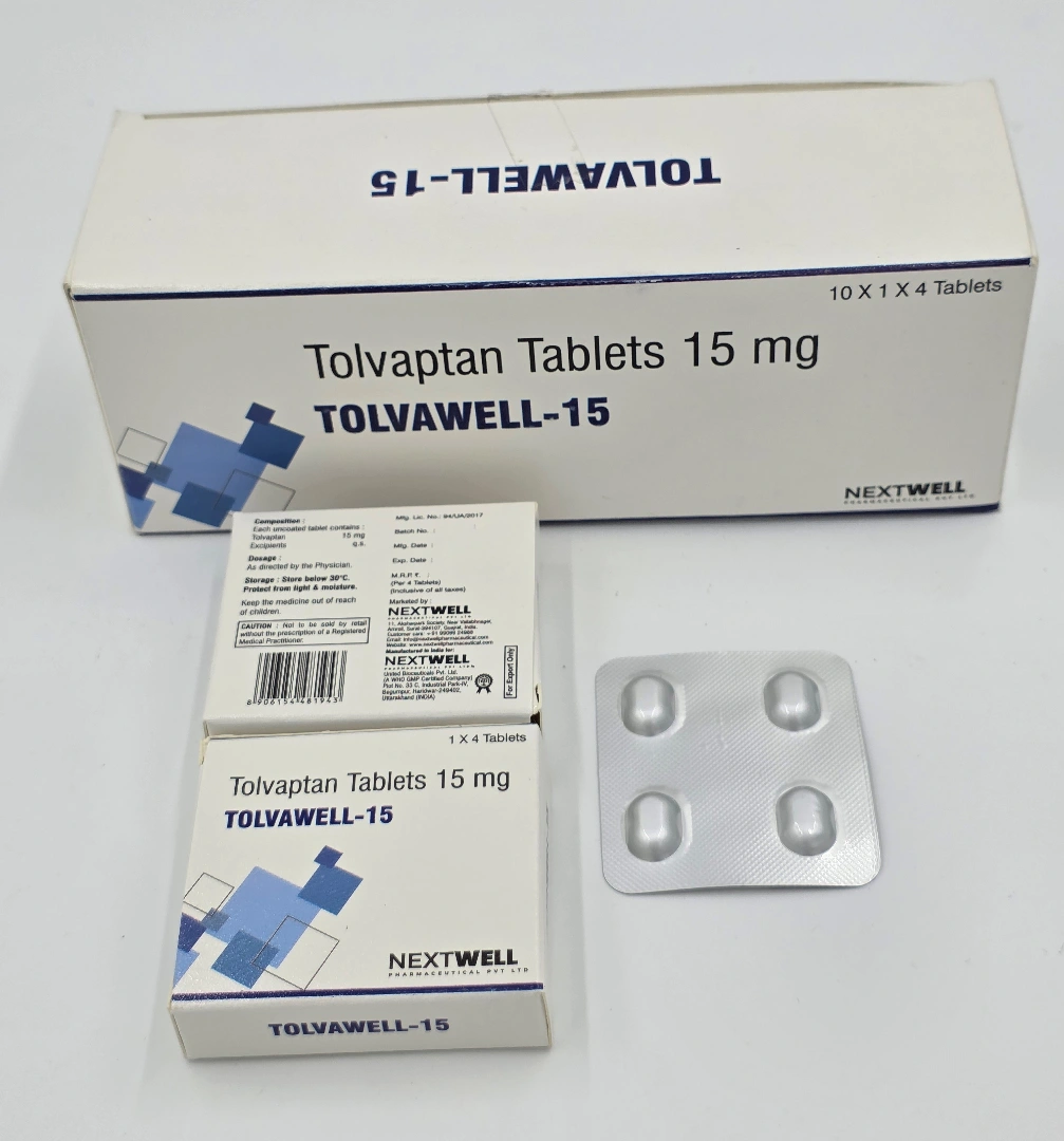 Tolvawell-15 (Tolvaptan Tablets 15mg) is a highly effective vasopressin V2-receptor antagonist used for the management of hyponatremia (low sodium levels in the blood) caused by SIADH, congestive heart failure, and liver cirrhosis. Manufactured by Nextwell Pharmaceutical Pvt Ltd, this medicine helps restore sodium balance safely by increasing urine output while preserving essential electrolytes.